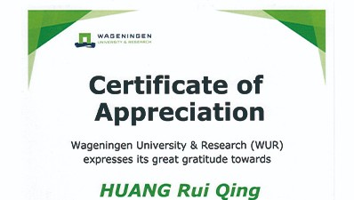 瓦赫宁根大学与研究中心(WUR)感谢黄瑞清博士在中国校友会董事会中的卓越贡献